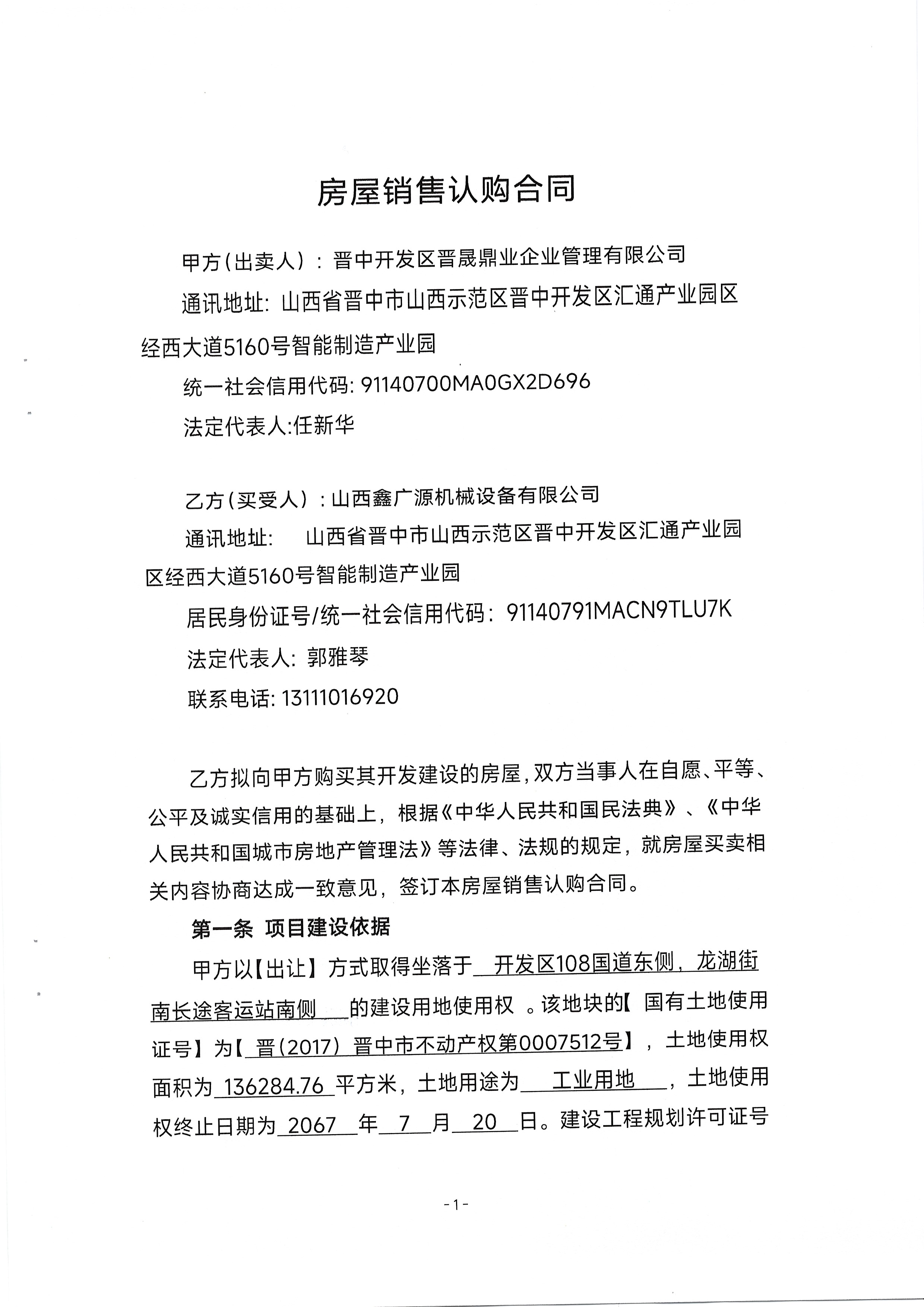 山西鑫广源机械设备有限公司购房合同.docx