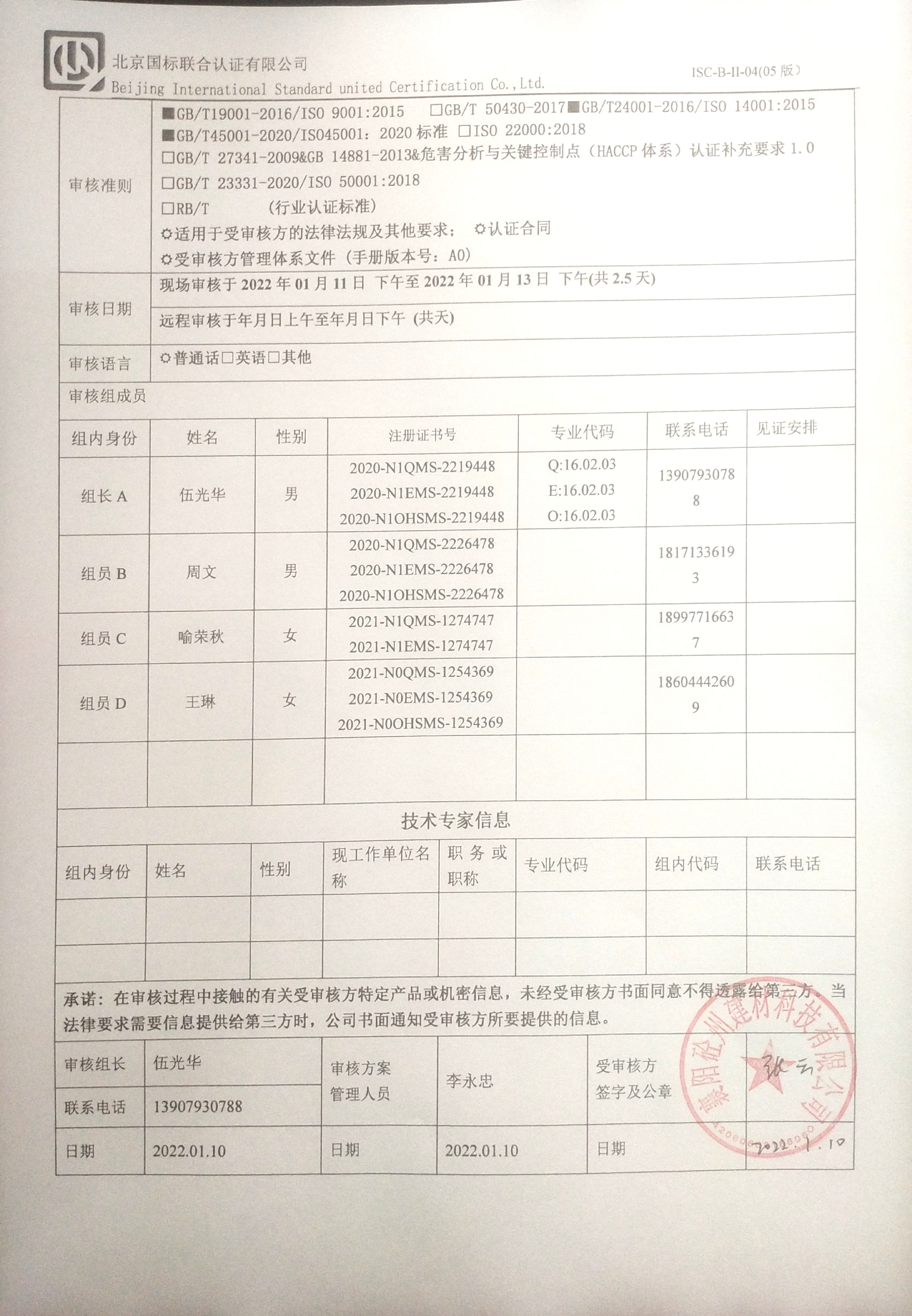 2022/1/10 15:16 477184 D ISC-B-II-17 审核组现场照片.doc