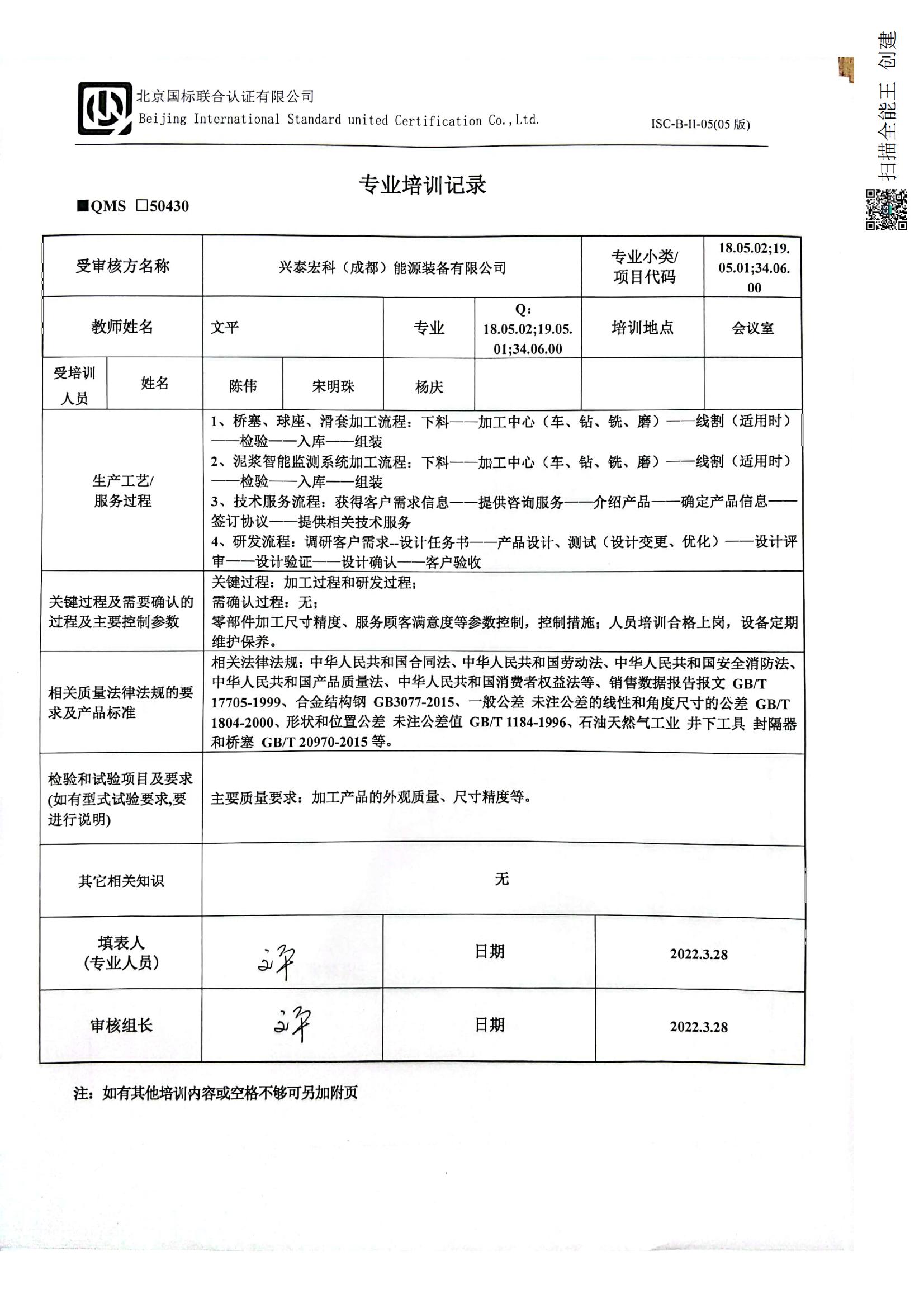2022/3/30 15:13 27662 D ISC-B-I-06 专业培训记录.docx