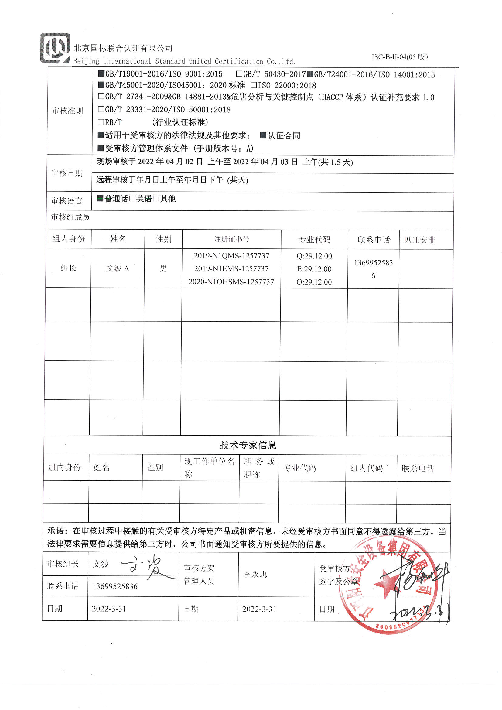 2022/3/30 11:19 116437 D ISC-B-II-14 审核组工作情况反馈表.docx