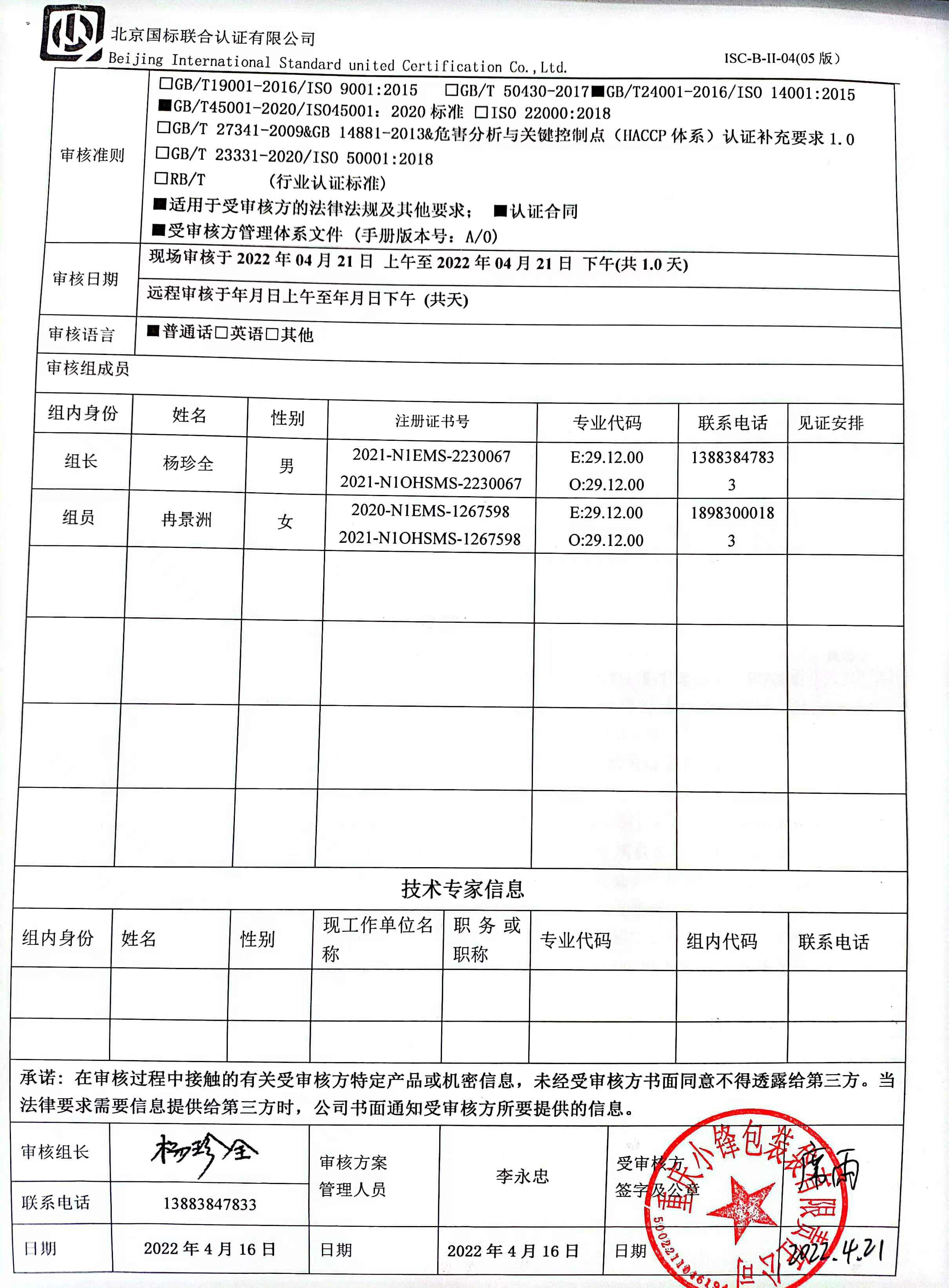 2022/4/21 13:57 501443 D ISC-B-II-17 审核组现场照片.doc