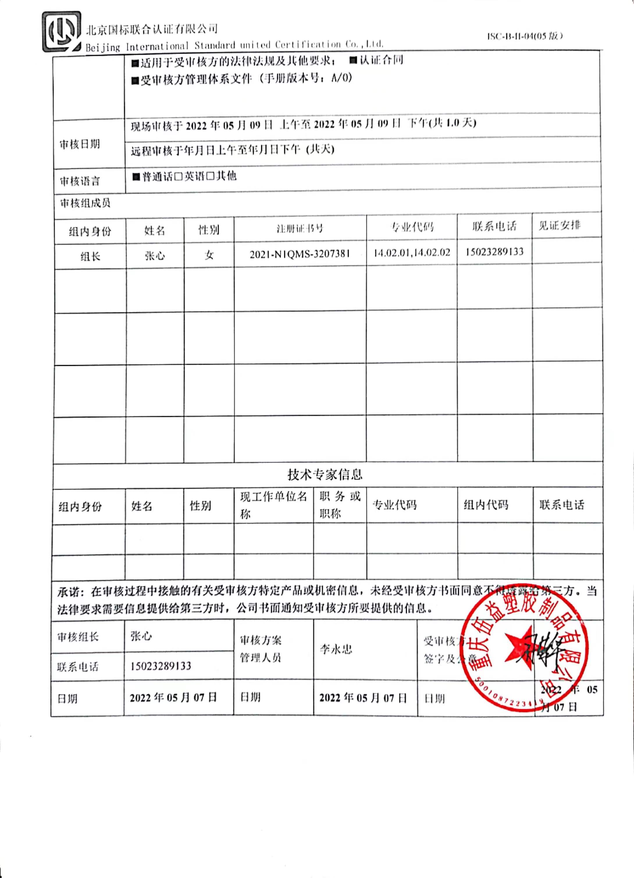 2022/5/9 15:00 595456 D ISC-B-II-17 审核组现场照片.doc