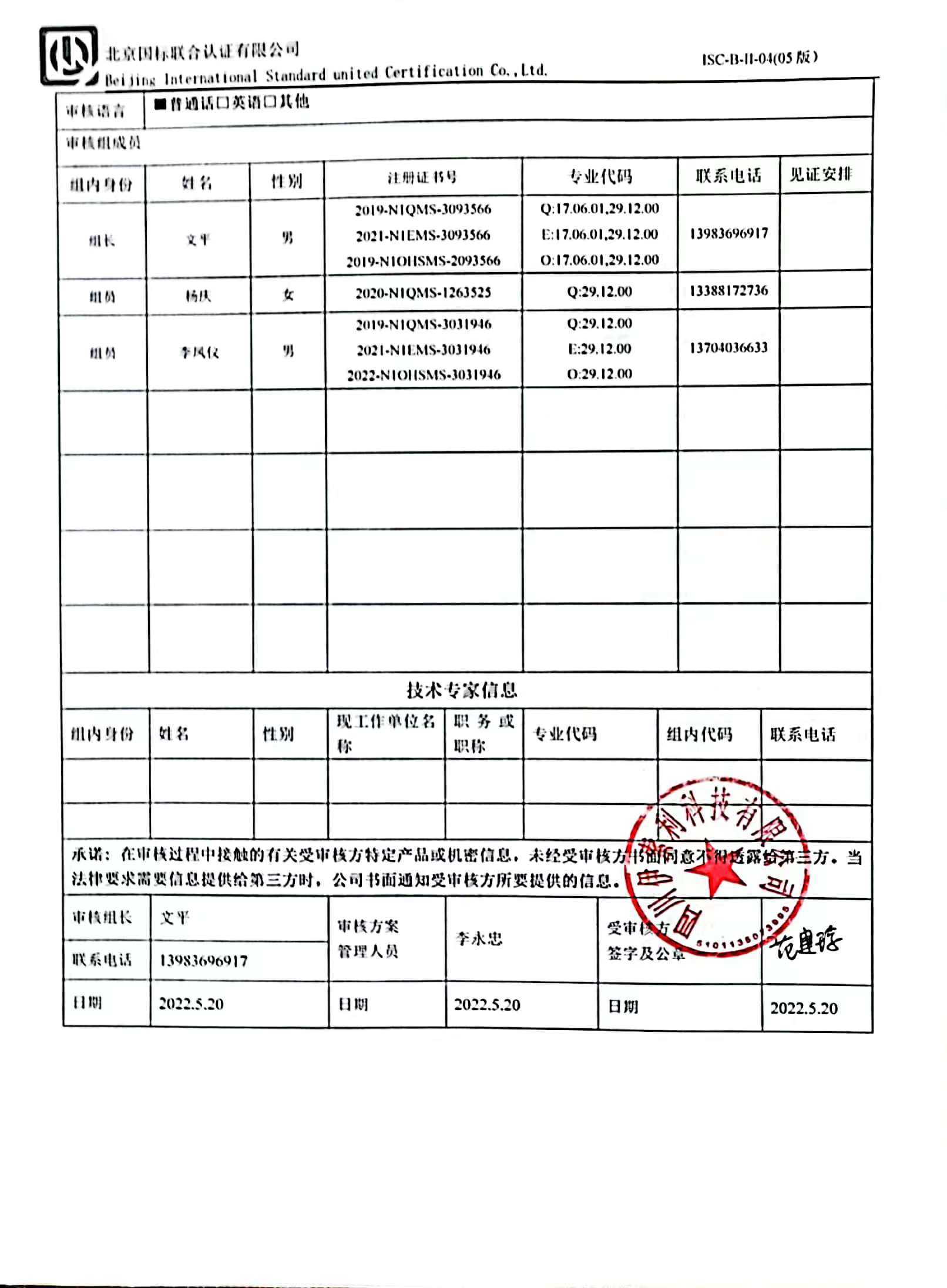 2022/5/21 20:50 116658 D ISC-B-II-14 审核组工作情况反馈表.docx
