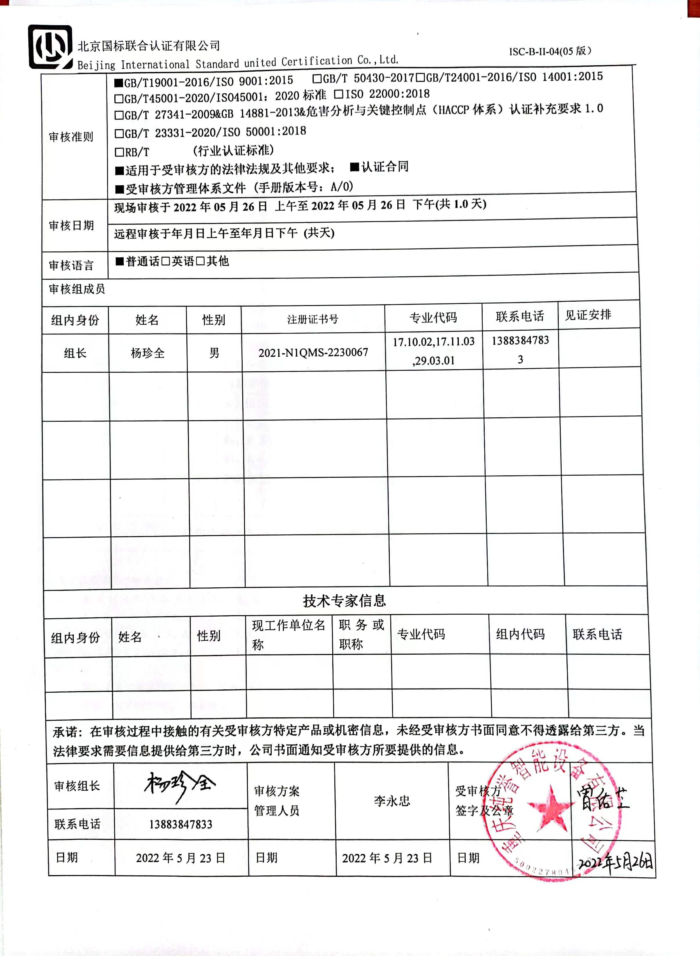 2022/5/26 15:20 537479 D ISC-B-II-14 审核组工作情况反馈表.jpg