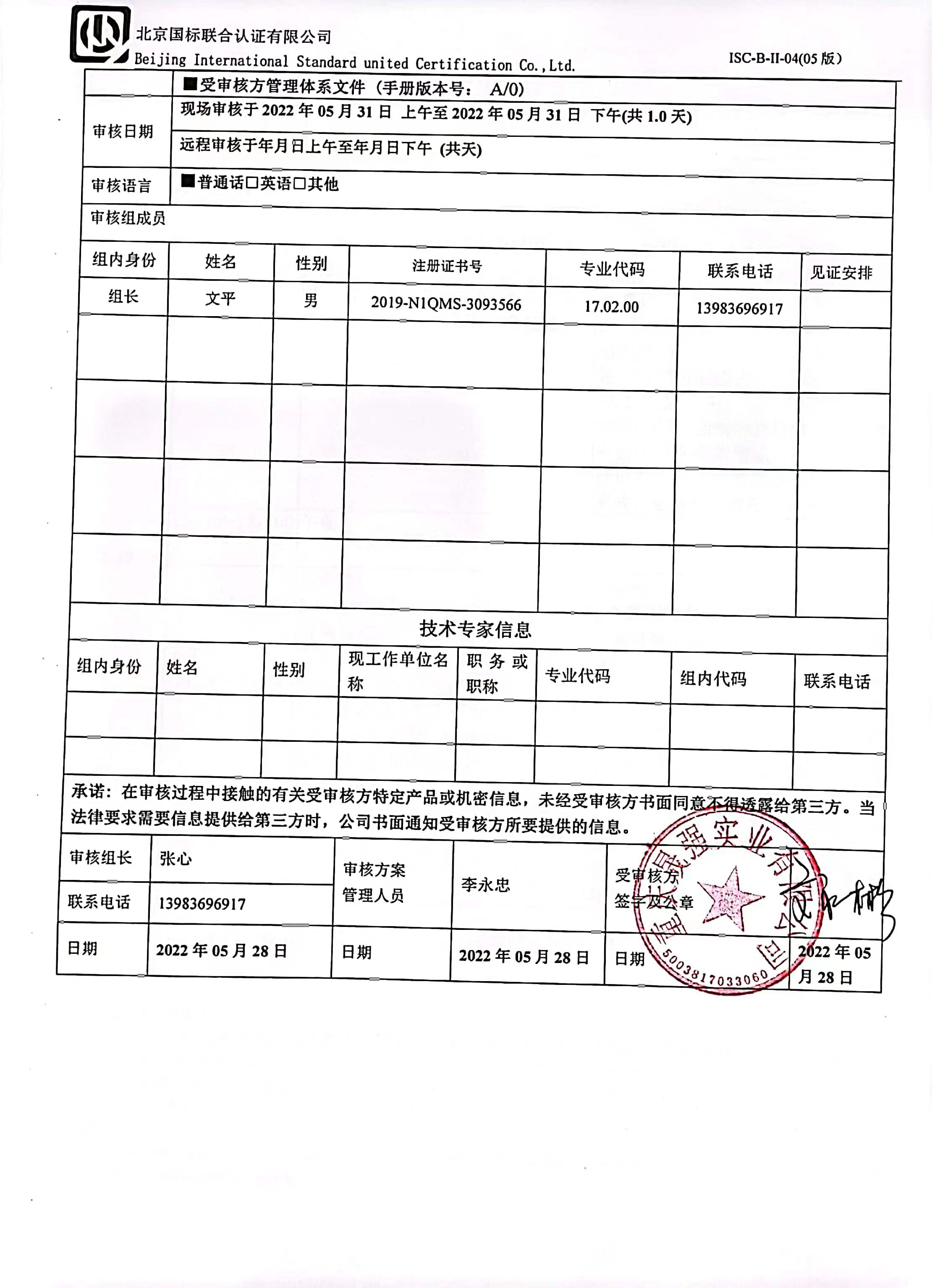 2022/5/31 21:49 165984 D ISC-B-II-13A 管理体系审核报告Q.docx