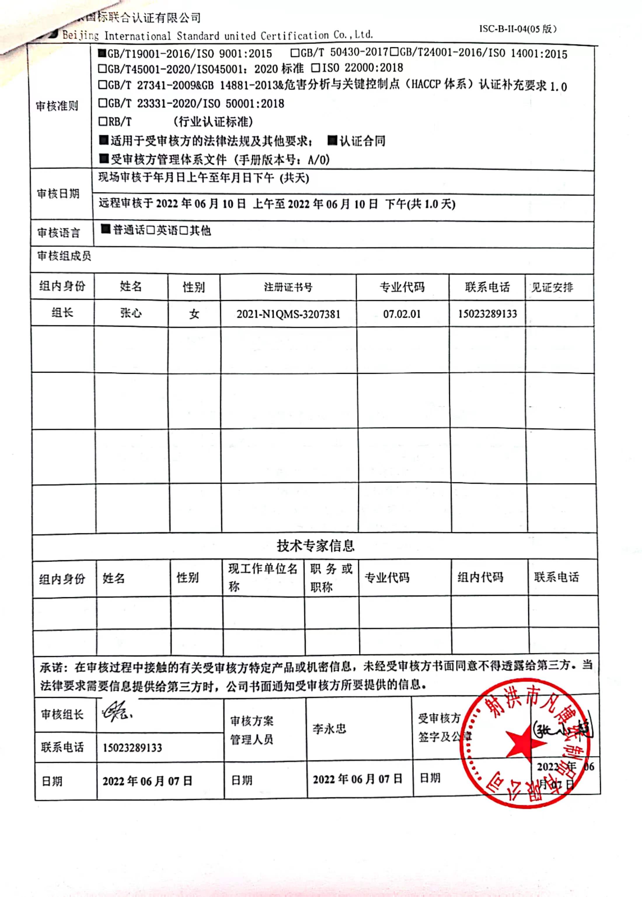 2022/6/10 16:28 170009 D ISC-B-II-13A 管理体系审核报告Q.docx
