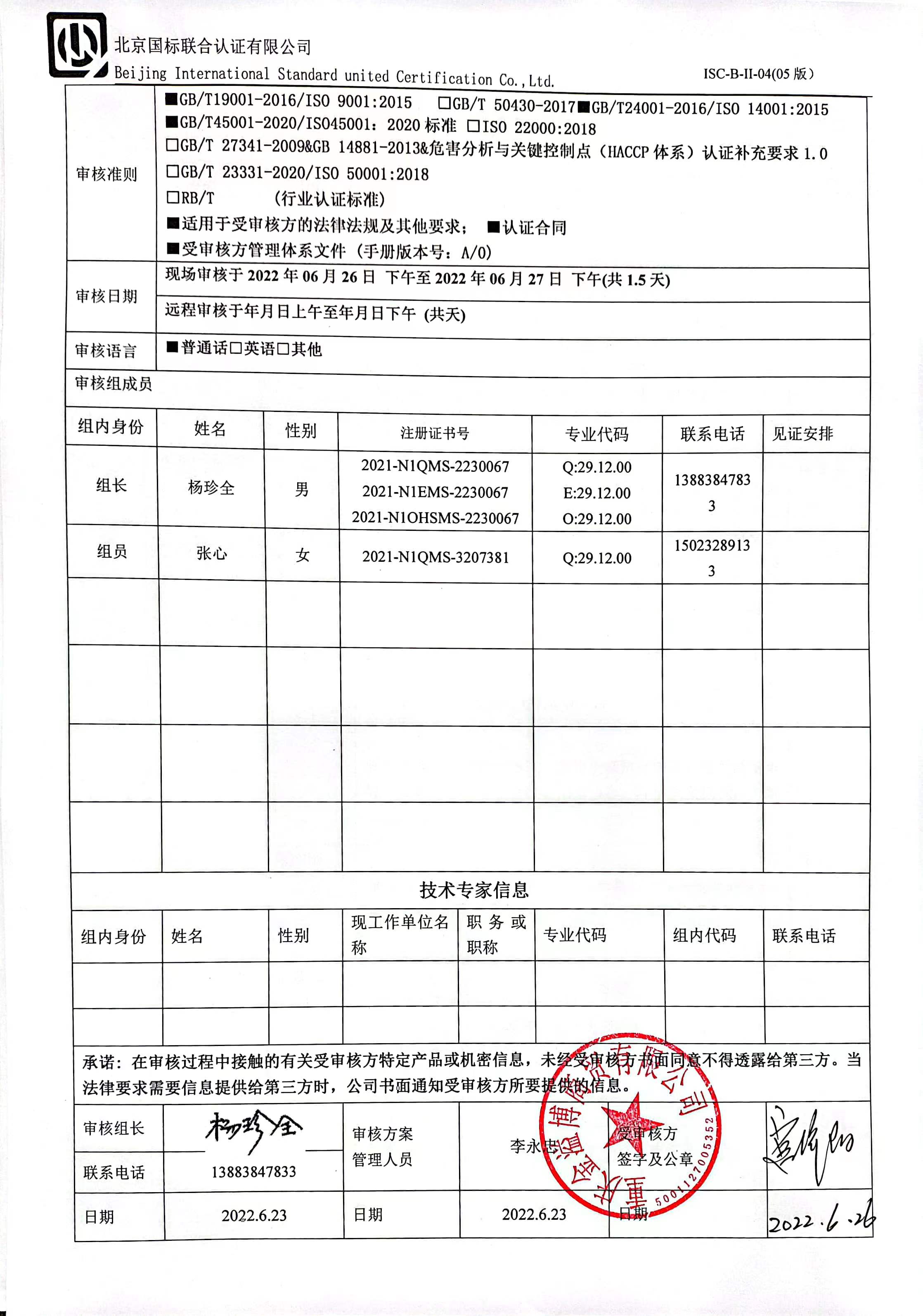 2022/6/27 14:24 479077 D ISC-B-II-17 审核组现场照片.doc