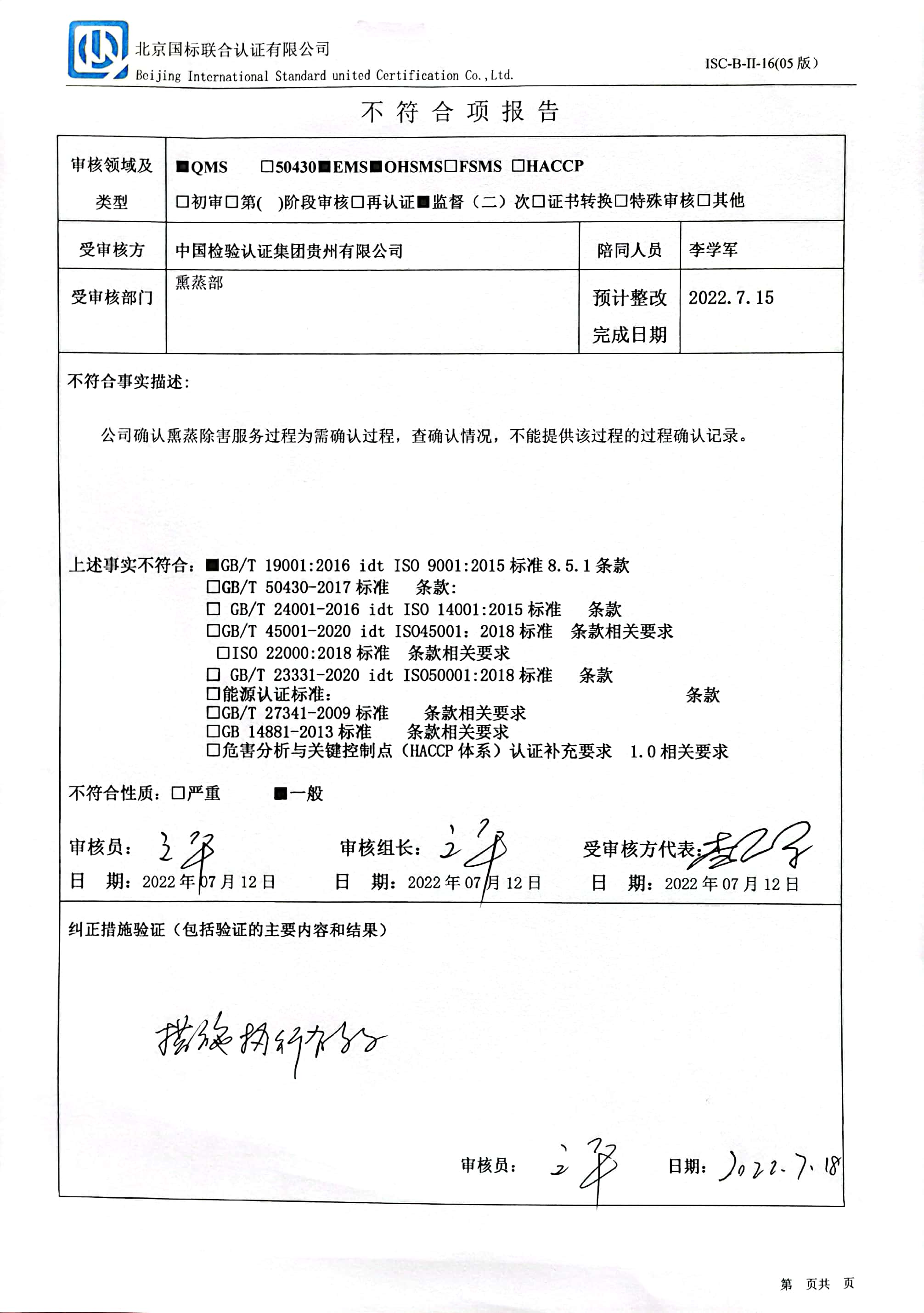2022/7/12 15:47 116323 D ISC-B-II-16 不符合报告及纠正措施表.docx