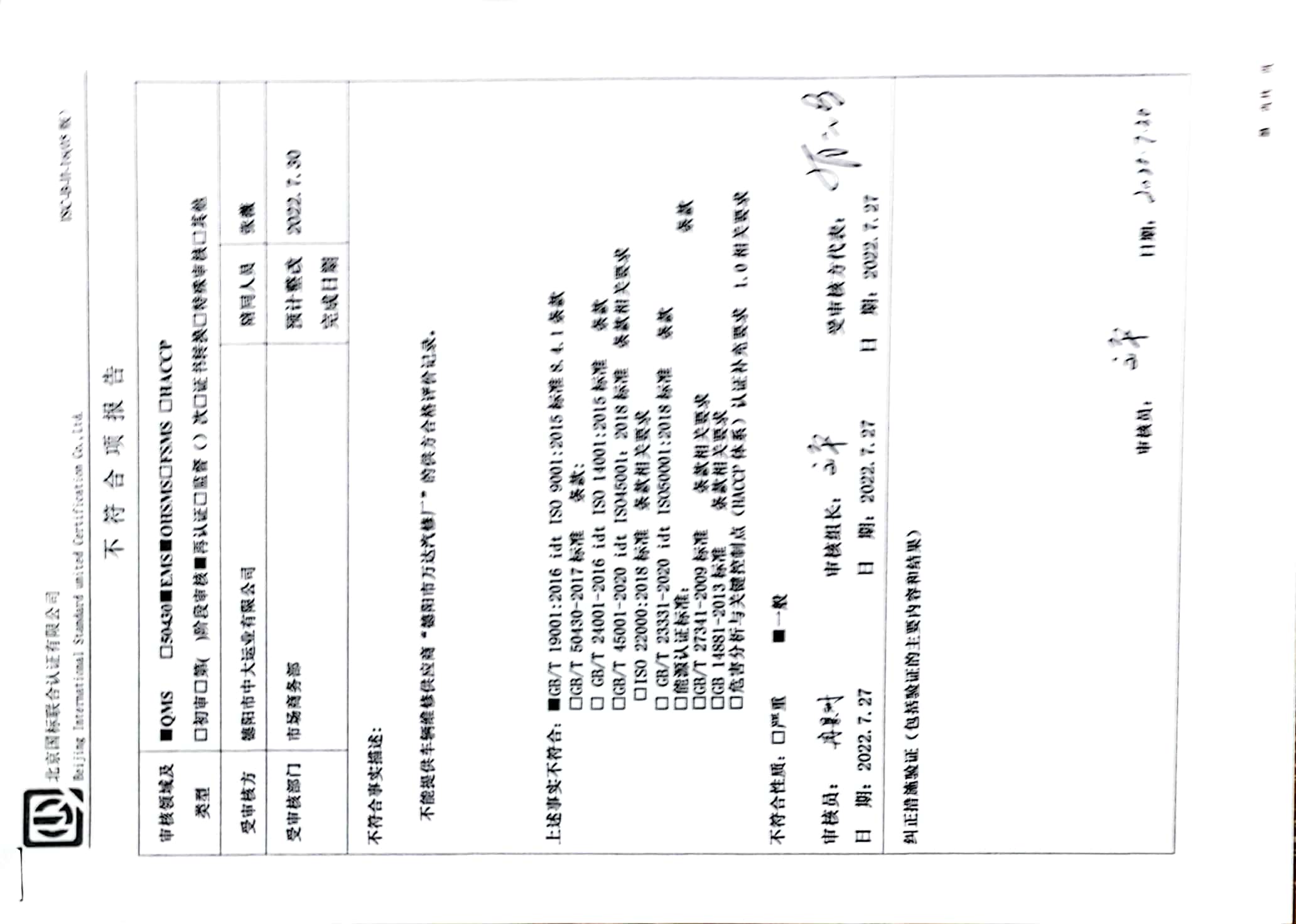 2022/7/27 15:25 4347775 D ISC-B-II-12 管理体系审核记录表(车队).docx