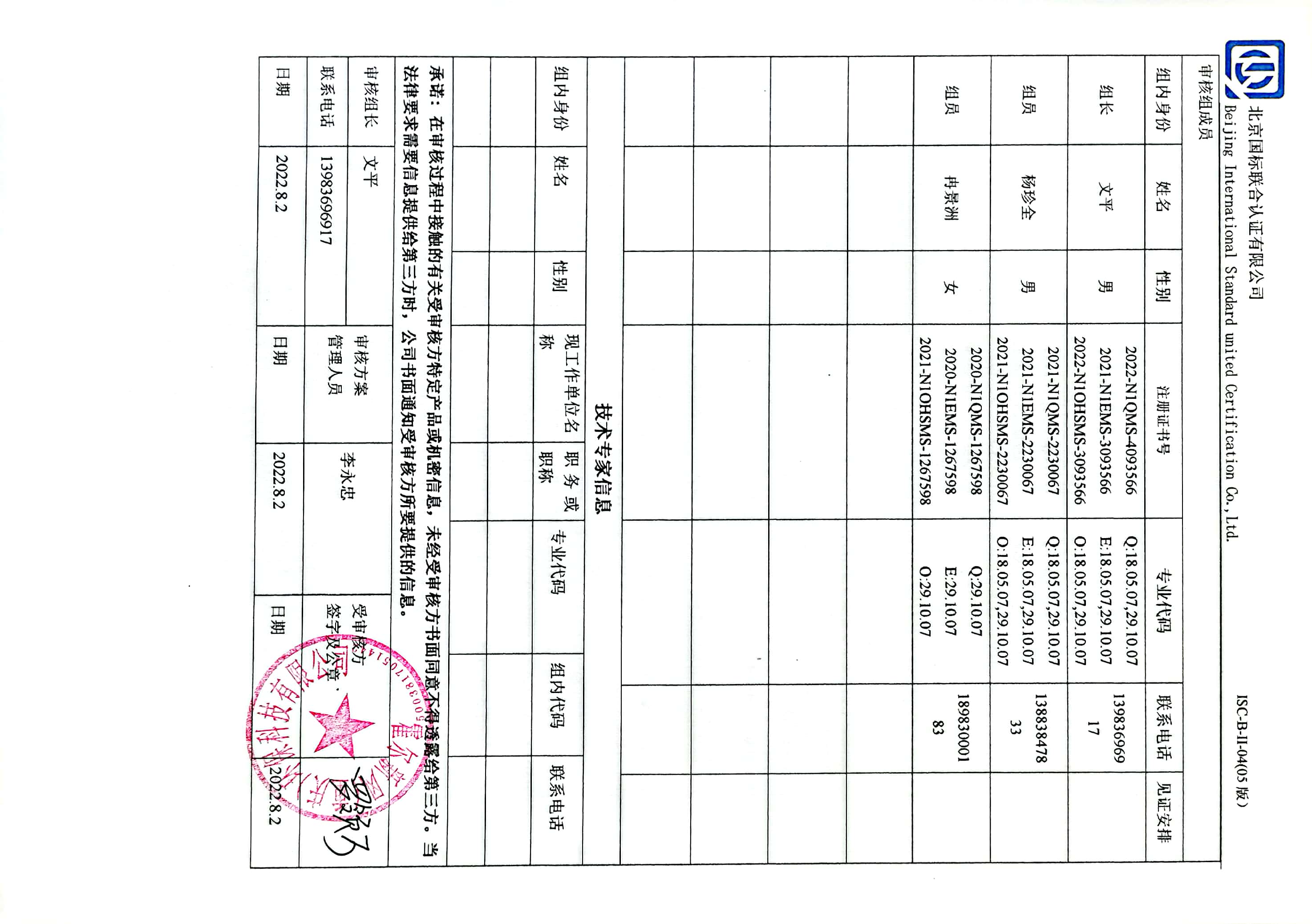 2022/8/3 21:00 128007 D ISC-B-II-06 认证人员公正性与真实性声明.docx