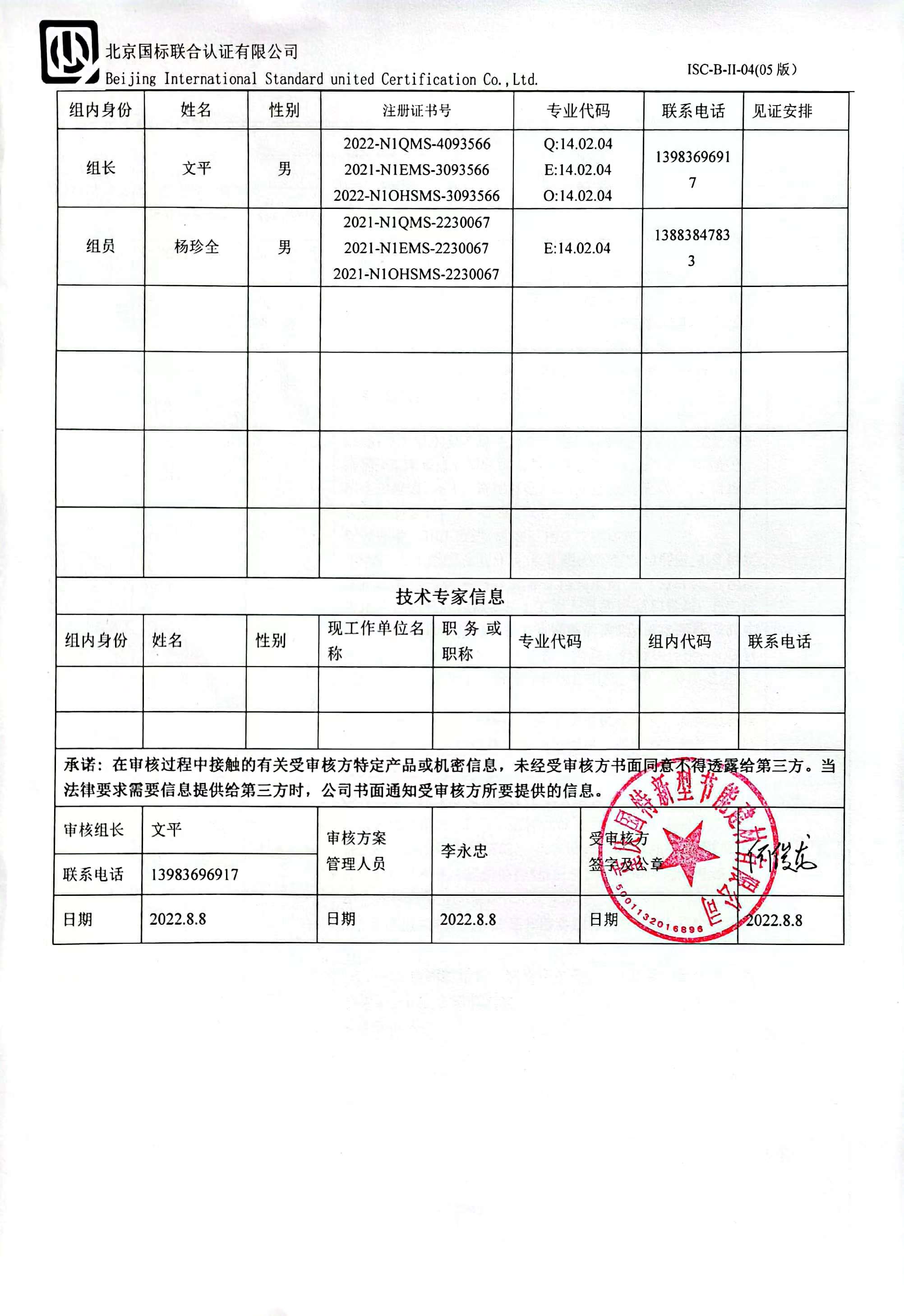 2022/8/15 14:49 761856 D ISC-B-II-17 审核组现场照片.doc