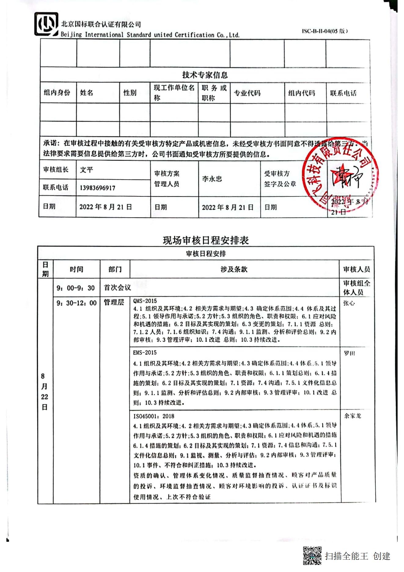 2022/8/24 12:00 5507584 D ISC-B-II-17 审核组现场照片.doc