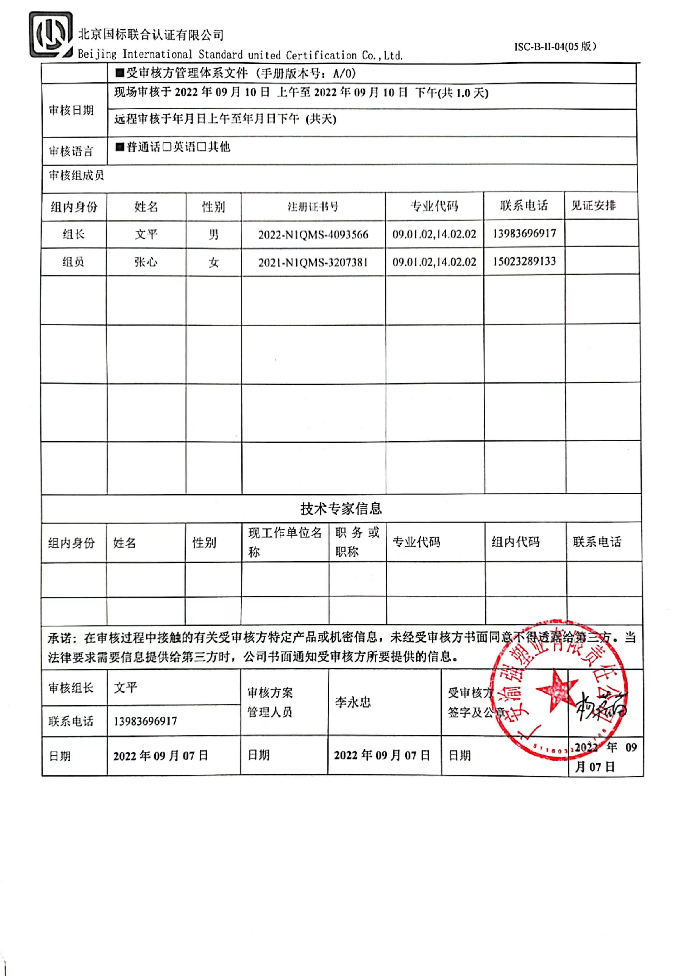 2022/9/13 9:27 391605 D ISC-B-II-13A 管理体系审核报告Q.jpg