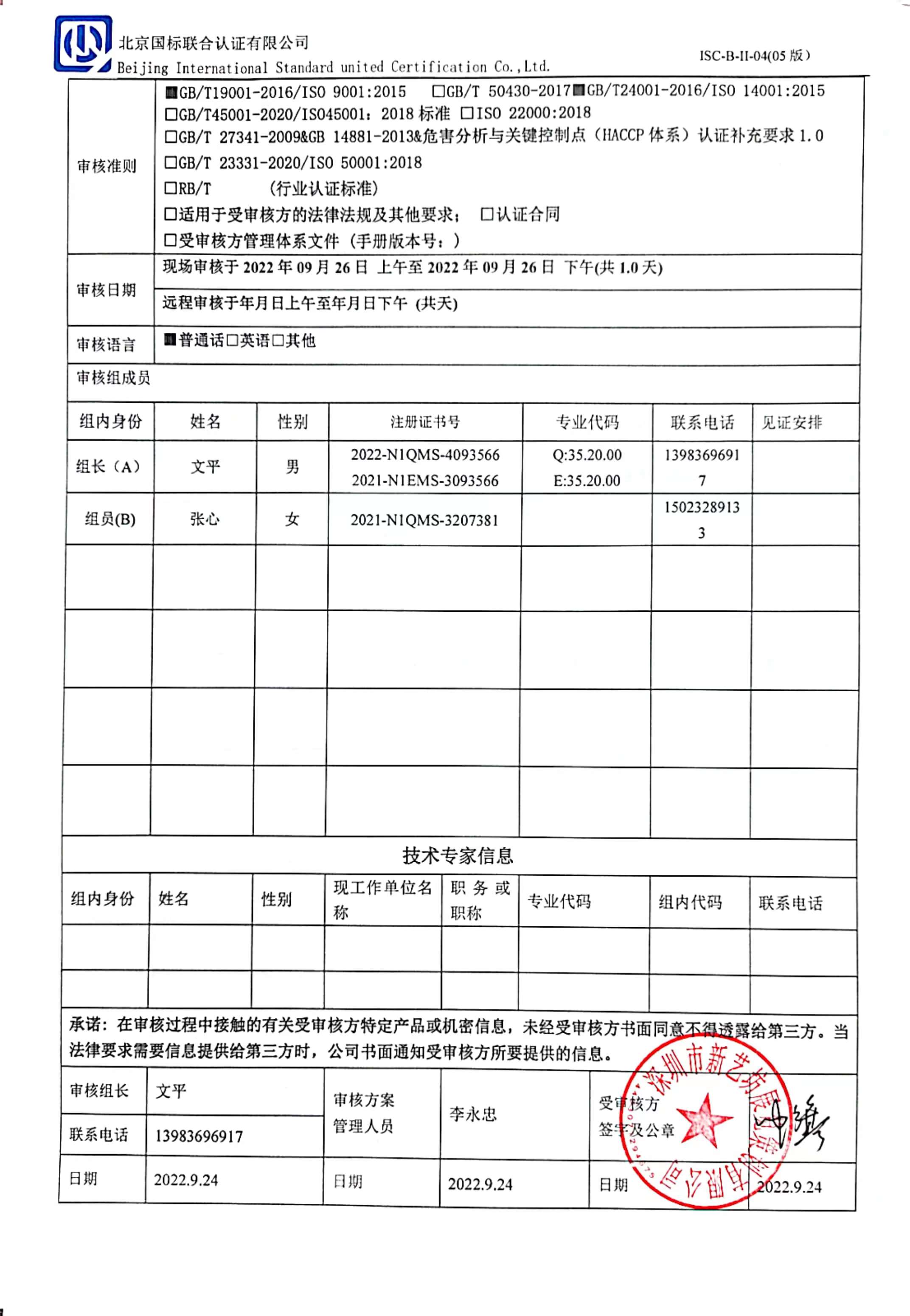 2022/9/26 15:27 737792 D ISC-B-II-17 审核组现场照片.doc