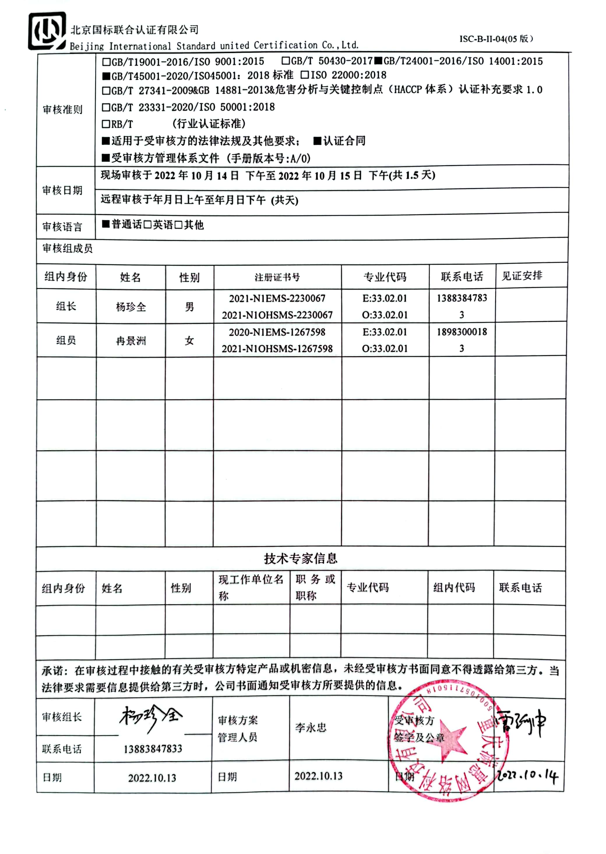 2022/10/14 16:10 442213 D ISC-B-II-17 审核组现场照片.doc