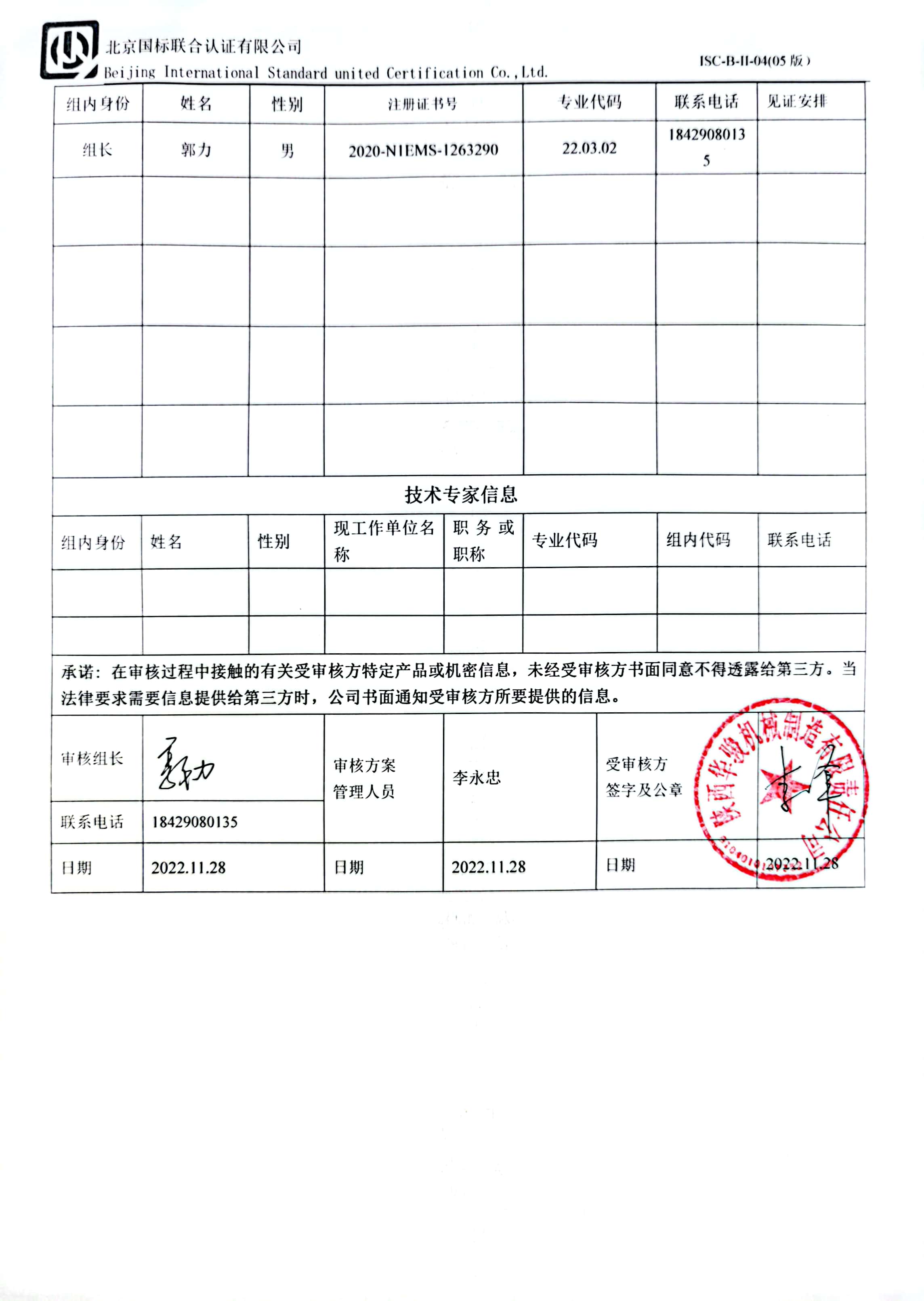 2022/11/28 16:26 26005 D ISC-B-II-20 认证证书信息确认书.docx