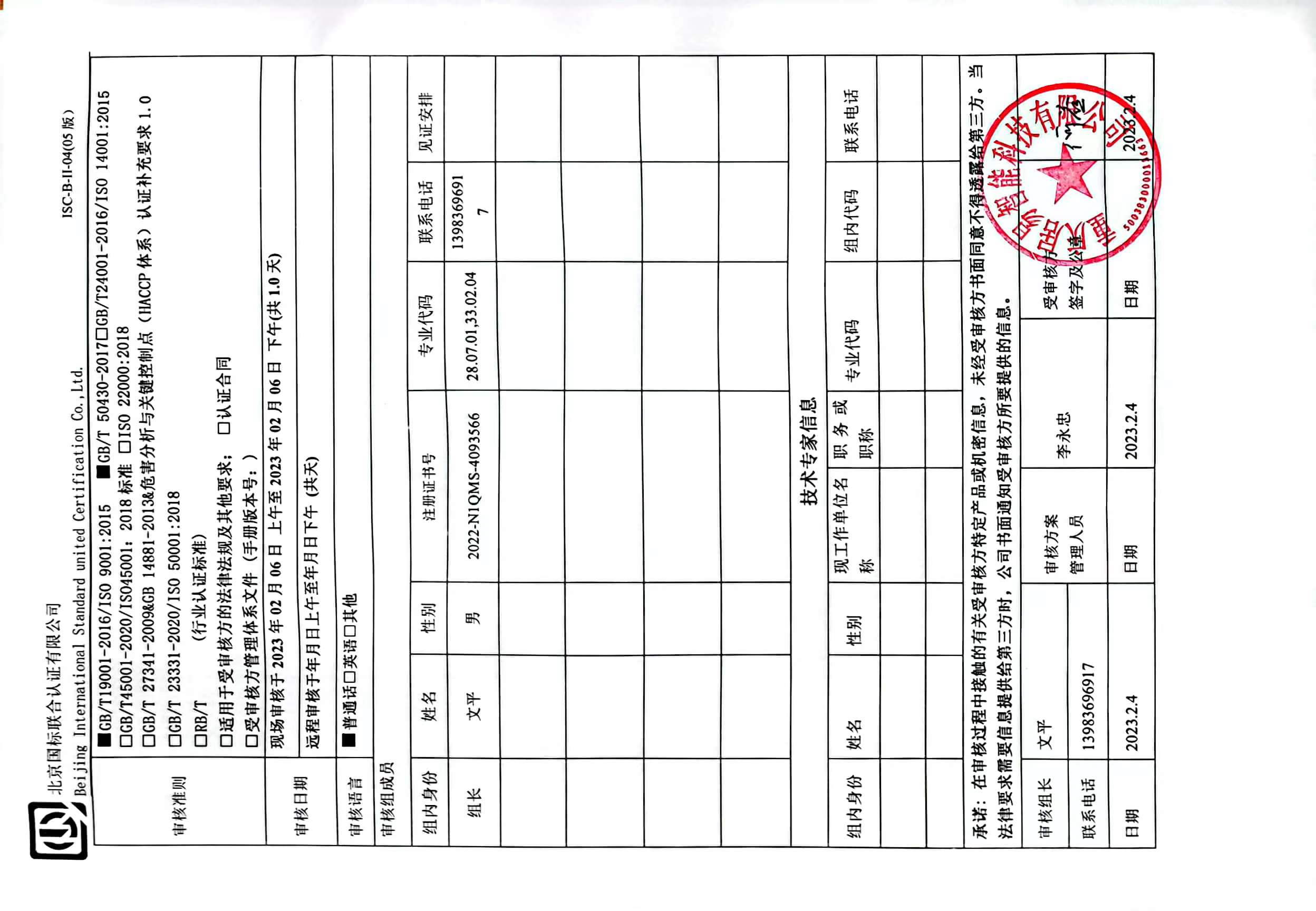 2023/2/7 10:52 1396224 D ISC-B-II-17 审核组现场照片.doc