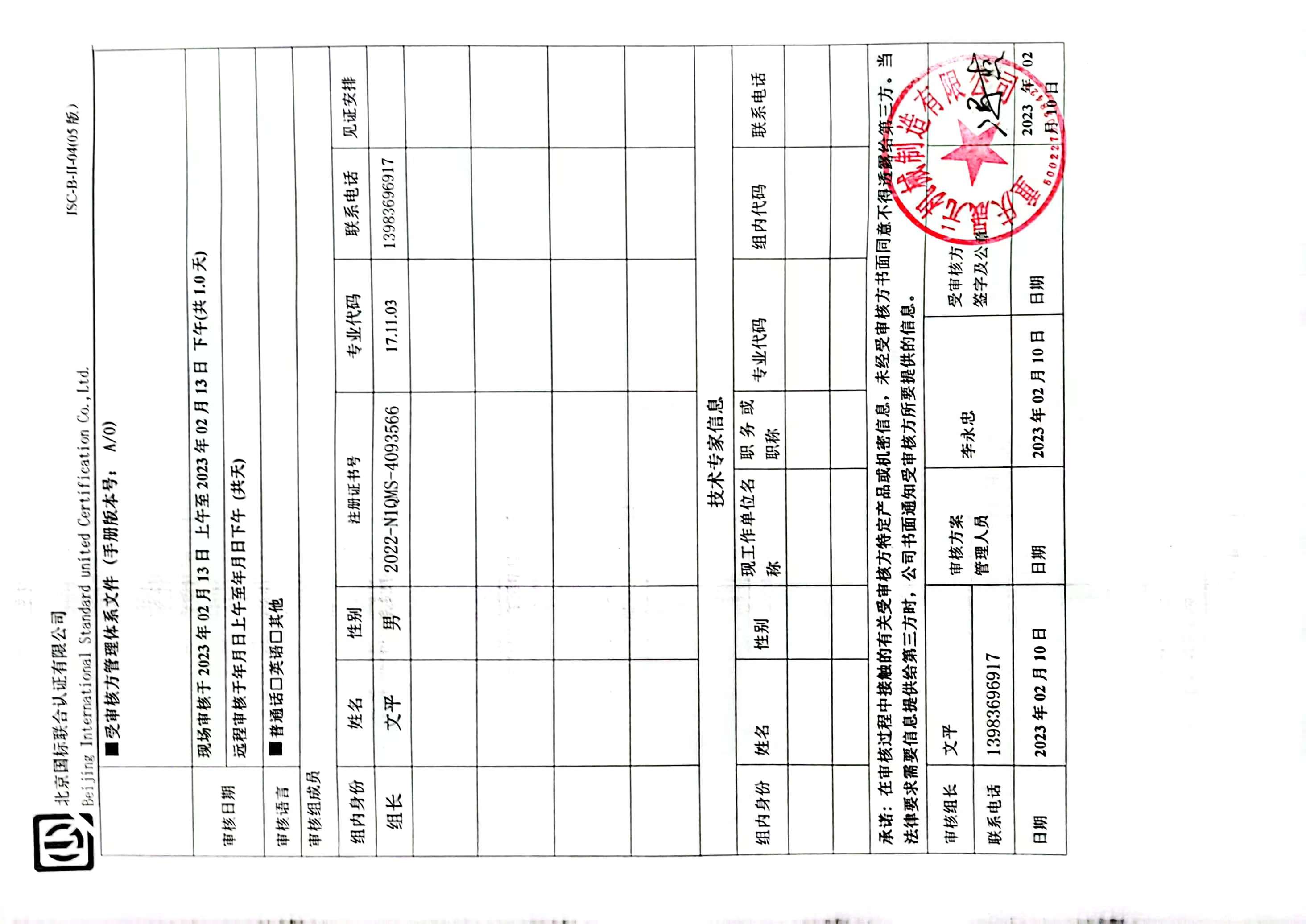 2023/2/14 11:41 157036 D ISC-B-II-13A 管理体系审核报告Q.docx