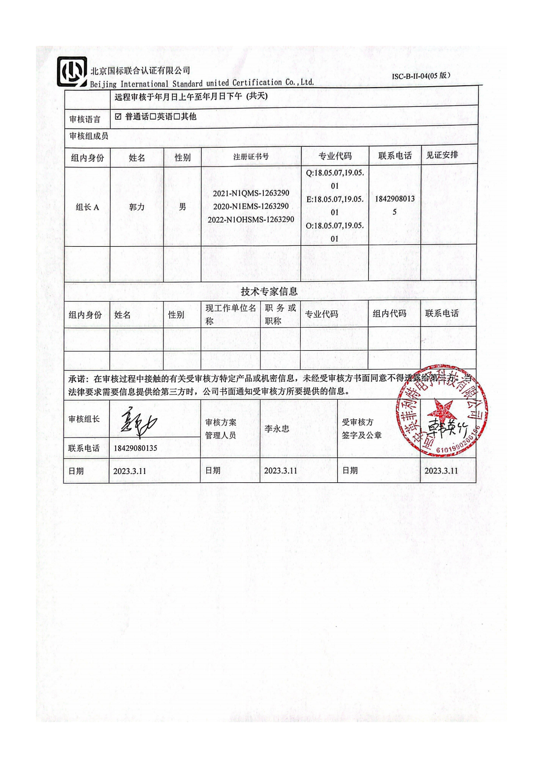 2023/3/3 14:30 110546 D ISC-B-II-14 审核组工作情况反馈表.docx