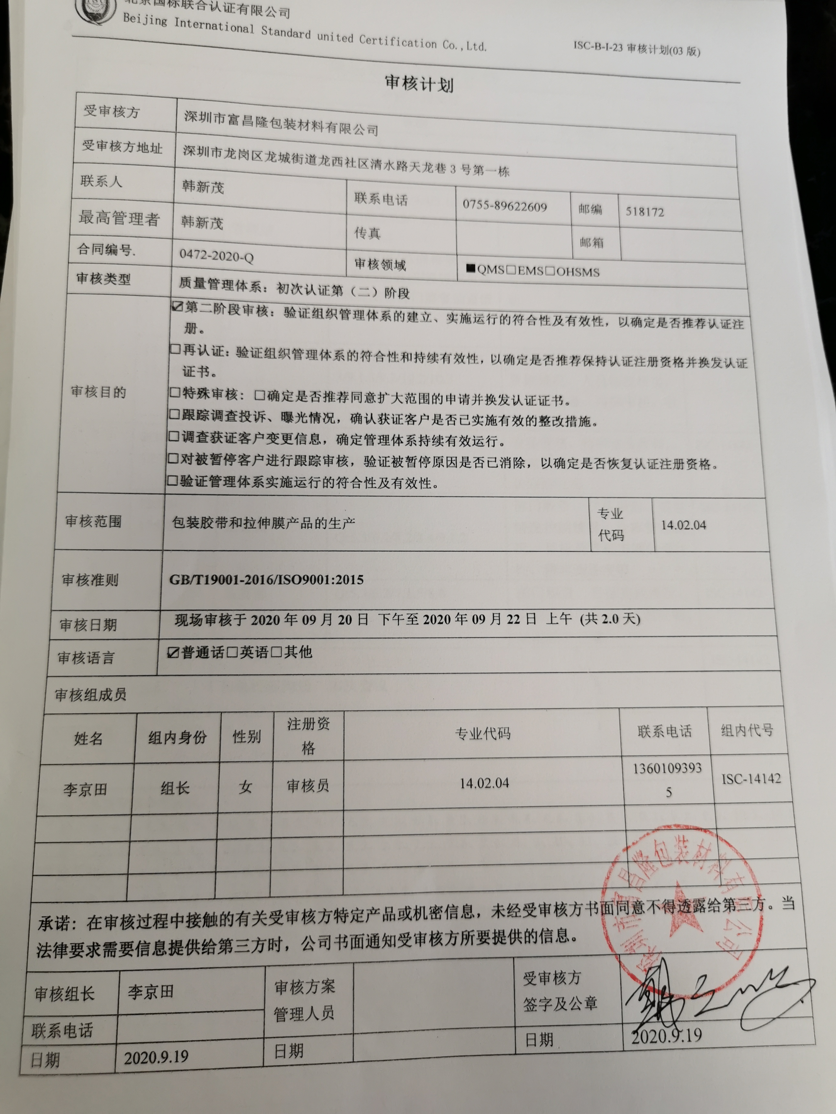 2020/9/20 20:37 31713 D ISC-B-I-23 审核计划.docx