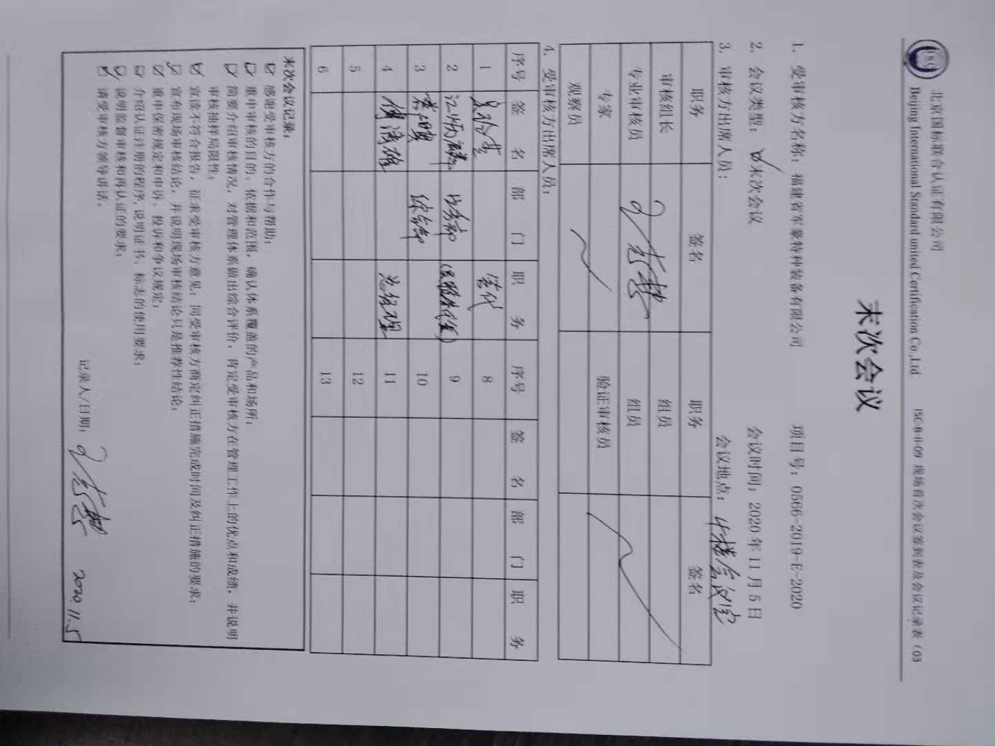 2020/11/5 10:26 65024 D ISC-B-II-09 现场首末次会议签到表及会议记录.doc